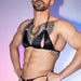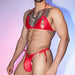 Serve it hot. The halter sits tight; peek‑through keyholes tease. O‑rings mark the target. Then that side‑tie G‑string? Pull, and the vibe escalates.