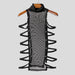Down each side, straps clamp your torso in, riveted with metal studs that invite fingers to trace and tug. Every twist of your body pulls the gay mesh harness tight, outlining lats, ribs, obliques. Street to warehouse. Bar to backroom.