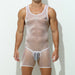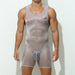 Full Disclosure plays with what you show and what you suggest. A barely‑there mesh singlet hugs like a second skin, while the thong harness underneath draws a clean, graphic outline that becomes the star. Contrast binding sharpens the silhouette; the open‑pouch construction on the inner layer keeps things practical when the night heats up.