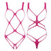 Slide in. Click. The web maps your abs. Waist cinched. Back straps kiss the spine, then spread—lats sharp, cheeks framed.
