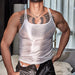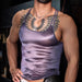 The double spaghetti straps feel a little lingerie, a little designer. The scoop neck keeps things flattering but not costume-y, and the length hits just right to tuck into leather pants or sit relaxed over denim. In darker shades it reads like a wet-look tank; in white it goes semi‑sheer so your ink and chest hair show through under hotel lighting.