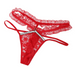 Sheer pouch teases. Ruffle sits high on the hip. Charm winks. Back’s just strings—framed, on purpose.