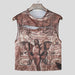This graphic cutout crop tank hits above the waist, so your stomach shows when you lift your arms, when you lean in, when you’re pressed close in a crowded room. People clock the cutout first. Then the skin. Then they’re too near.
