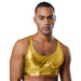 Slim-fit metallic crop top. Choose based on your usual tank-top size.