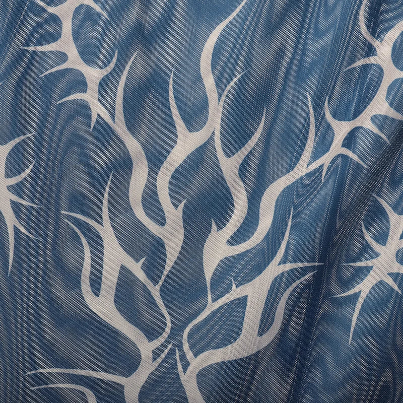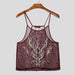 Totally sheer mesh, skinny straps, and a tribal‑style blaze licking up your torso. Your chest, your piercings, that post‑pump glow—all on display, just tinted in black, blue, or deep wine.