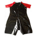 Gloss black. Red sleeves. No soft edges.