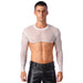 That little layer that makes the whole fit land. Underline is a soft, breathable mesh shrug that skims the shoulders and arms, then dips just under the pecs to frame your chest. It’s light, moves with you, and keeps you cool when the room heats up.